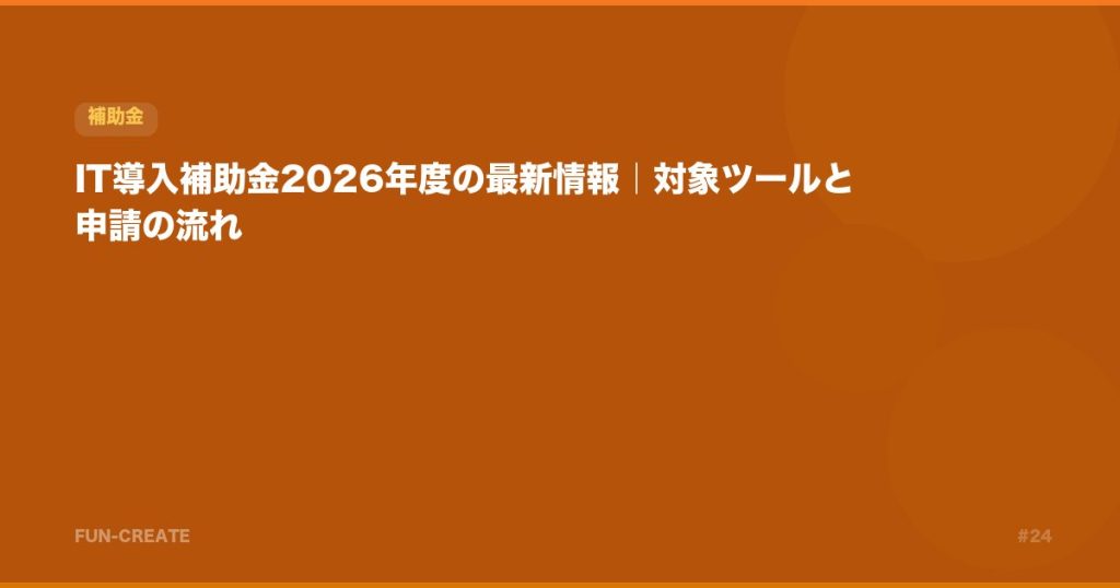 IT導入補助金2026年度の最新情報をまとめました。対象ツール、補助率、申請スケジュール、申請の流れを解説します。