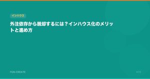内製化は「外注を止める」ことが目的ではなく、「自社の意思で施策を回せる体制を作る」ことが目的です。FUN-CREATEのインハウス支援は月額5.5万円〜。伴走コーチングで自走できる体制を一緒に作ります。インハウス支援サービスの詳細はこちら。